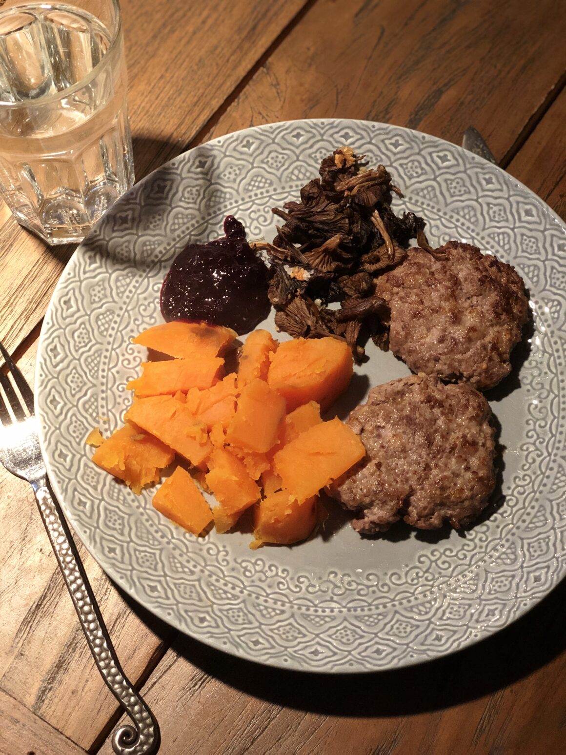 Jag hade det jag gjorde om man säger så. Till middag några dagar senare åt vi blandfärsbiffar på griskött från våra egna grisar samt älgfärs från min pappa, hemkokt svartvinbärssylt, sötpotatis och trattkantareller. Magiskt gott! Stort tack till naturens skafferi för spons!