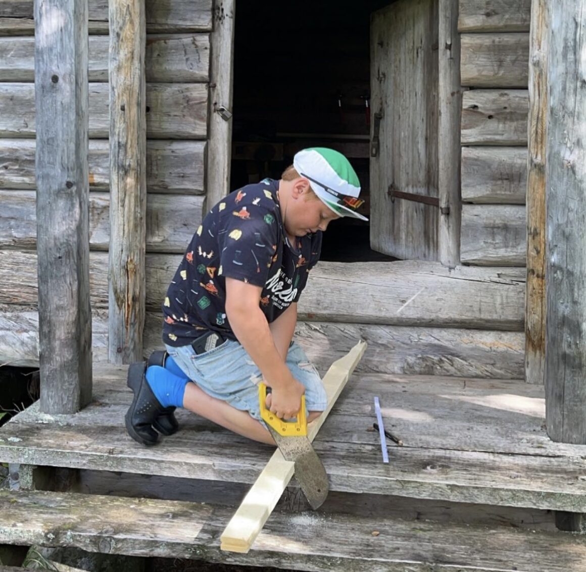 En trixig och kul bana med utmaningar i balans. Här finns även rutschkana och ett uppbyggt björnide att kika in i. När hembygdsgården anordnar marknad och hantverksdagar (torsdagar i juli och en eller två gånger i augusti) kan du även göra ett besök i ladugården med trädjuren och snickarboa.