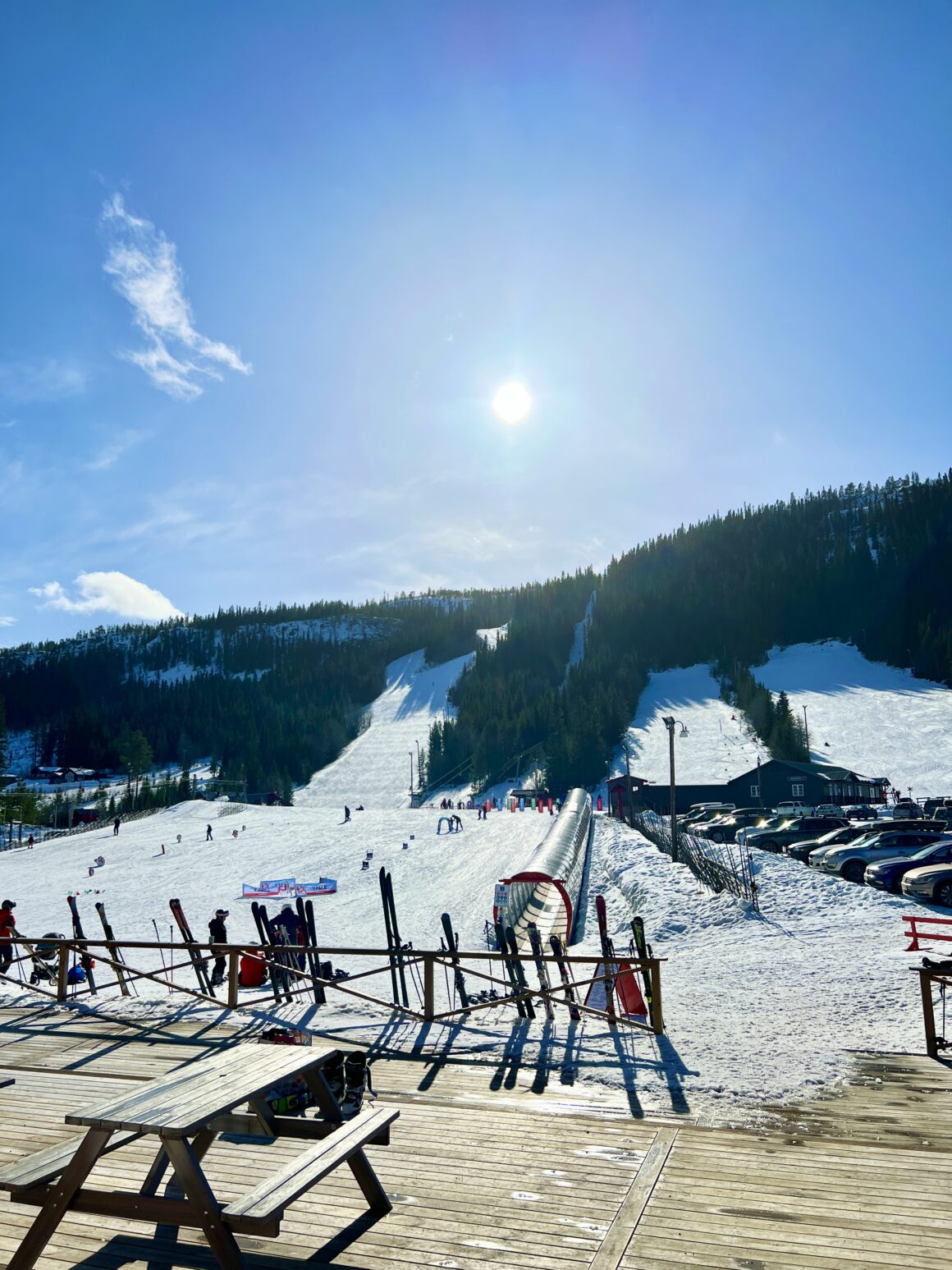 På våren när vädret tillåter körs after-skin på den 500 kvadratmeter stora altanen. Bättre drag i fjällen än här under påsken får du leta efter!