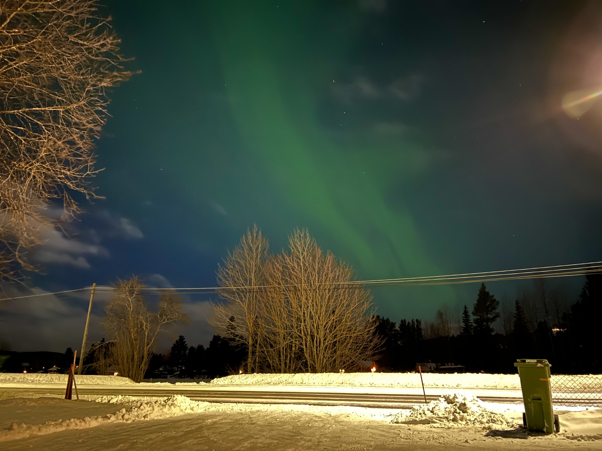 Wow vilken kväll! Jag finner inte ord. Jag har sällan varit med om, eller faktiskt aldrig, en sån galet bra norrskenskväll här i byn! Överallt dansade det gröna skenet i alla väderstreck och man kunde till och med fota det där det fanns andra lysen, vilket annars alltid är mitt viktigaste tips till alla som letar norrsken, att man alltid ska bege sig ifrån ljuset till mörkret. Men ikväll behövdes inte det.
